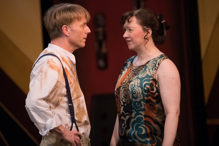 After the interval, the protagonist manages to arrange a semi re-construction of the murder scene. Parissa Zamanpour who plays Carla with an immaculate Canadian accent, does a fantastic job of illustrating her determination to clear her mother. In the flashback Lindsey Barker captures the dilemma faced by Carla’s mum, Caroline, at the time of the murder. Anthony Morris is effective as Justin Fogg and Christine Perry’s governess is credible. Jonathan Black is equally believable as Phillip Blake and Steve Searcy as his brother, Meredith. John Keen, who plays Amyas, the murdered man, is every inch an artist and adulterer, whilst Georgina Goodchild successfully plays both the adult and young Angela Warren, not an easy task. I especially like Fiona Primrose as the femme fatal, Elsa Lady Melksham. She oozes stage presence. She, too, successfully travels back in time.
