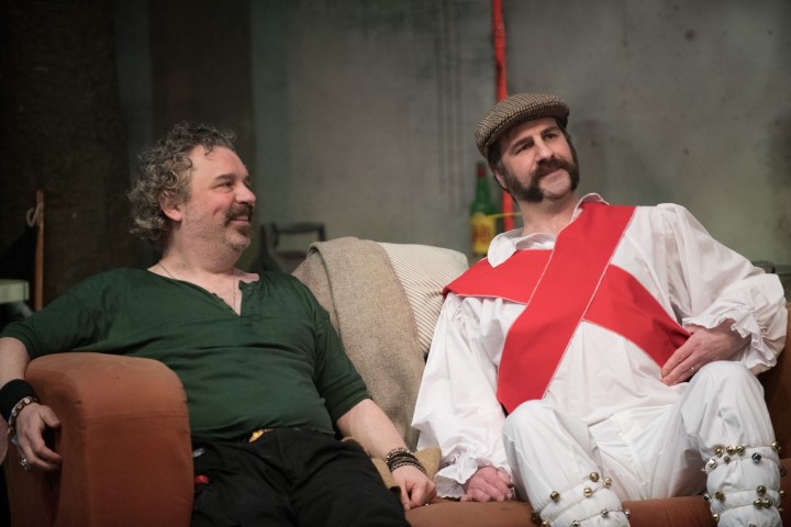 The central figure, Johnny ‘Rooster’ Byron is played uninhibitedly by Scott Ransome. He’s a wastrel and modern day Pied Piper, an alcoholic, drug dealing teller of tales. Rooster is threatened with eviction from his Gypsy-style caravan and curses Kennet and Avon Council. It’s the annual St George’s Day Flintlock Fair and his 10-year-old son (Sebastian Ross) wants his father to take him but, in his usual antagonistic fashion, he refuses to do so. Scott, an utterly believable tough cookie, looks down on Wesley, the publican (Matthew Banwell), who has to wear morris dance gear in order to re-enact an old custom. Rooster almost becomes a folk hero since eccentric losers and kids who he rescues from unpleasant fates, adore him. Scott’s performance is one of the most powerful, emotional acting displays I’ve seen in a long time.